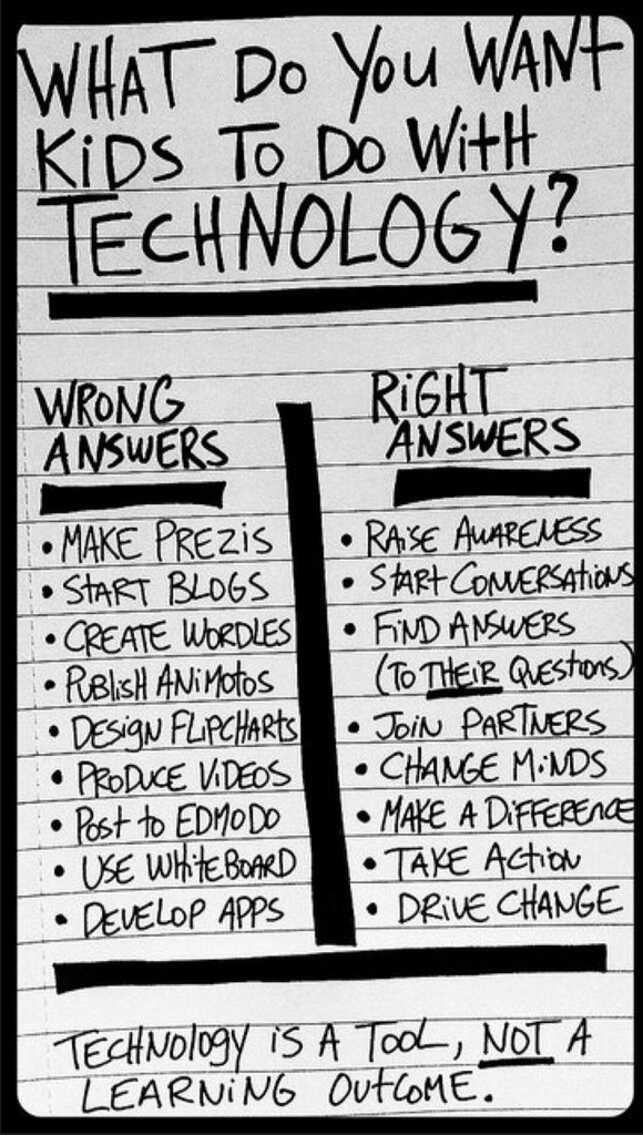 I saw this visual on George Couros blog which he originally saw on Bill Ferriter’s flickr and I decided to share it on my blog because I it is one of those visual that speaks volume about how and how not to effectively use educational technology.
