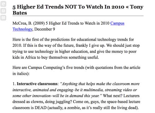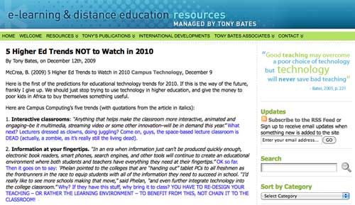 The following is a screen capture of Tony Bates blog in its raw state. While it is not a busy as some blogs it does have some activity at the top and bottom.