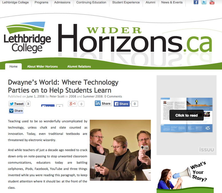 The article in Wider Horizons Dwayne’s World: Where Technology Parties on to Help Students Learn really captures the essence of the work that I have done at Lethbridge College.