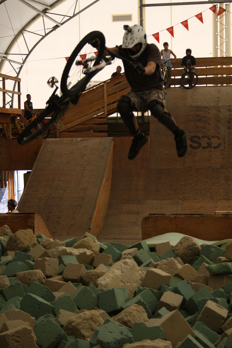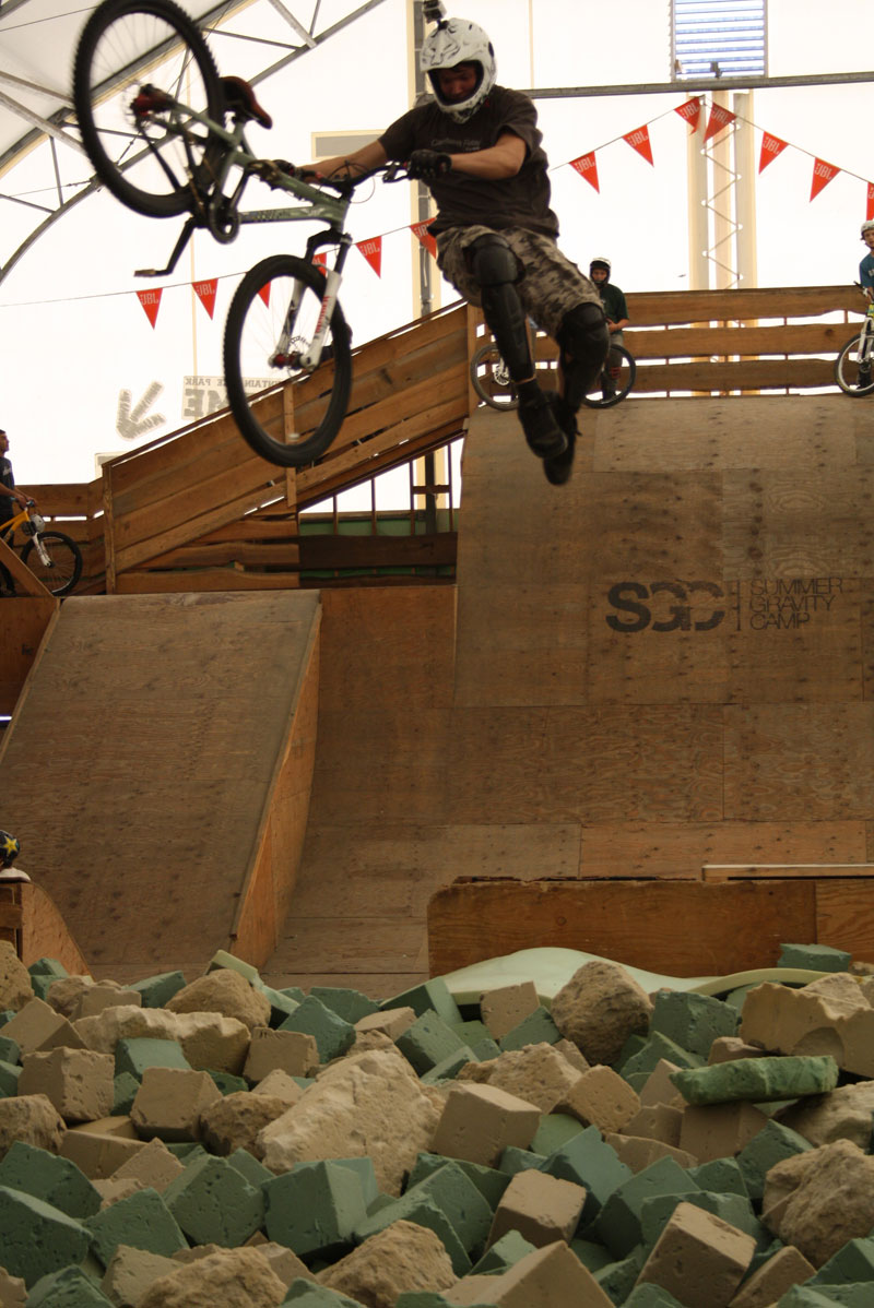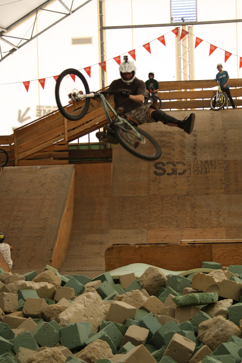 My younger son Caleb decided that he would like to learn how to do a backflip on his mountain bike and he knew a visit to the foampit would give him the safest and most pain-free way of mastering this stunt. For those who aren’t familiar with downhill mountain biking and racing, dirt jumping, slopestyle and other forms of extreme biking there is one unfortunate reality that a rider constantly faces. It is not a matter of if one will get hurt, but when and how badly will the rider be injured. So when a rider can work on dangerous stunts like back and front flips, tailwhips, x-overs and more and potentially eliminate or lessen the chance of getting hurt they will jump at the chance (pardon my pun).
